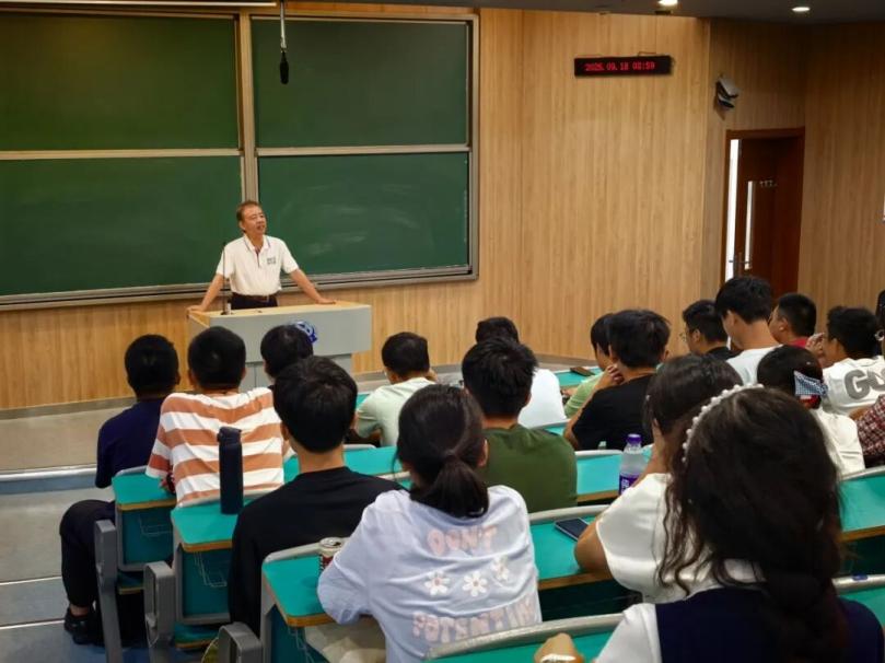 正值“九一八”事变爆发的94周年纪念日,公司关工委“五老”专家徐建云教授为刚踏入校园的新生们,带来了一场意义深远的爱国荣校教育。他带领同学们回顾了中国共产党的百年奋斗历程,引导大家从辉煌历史中感悟初心使命,汲取奋进力量。在爱国主义的情感共鸣之上,徐教授进一步聚焦公司发展历程,向同学们深情讲述了学校从创办至今的风雨岁月。最后,他勉励新生们要尊重历史,爱国爱校,在求学路上脚踏实地、追求卓越,收获精彩人生。