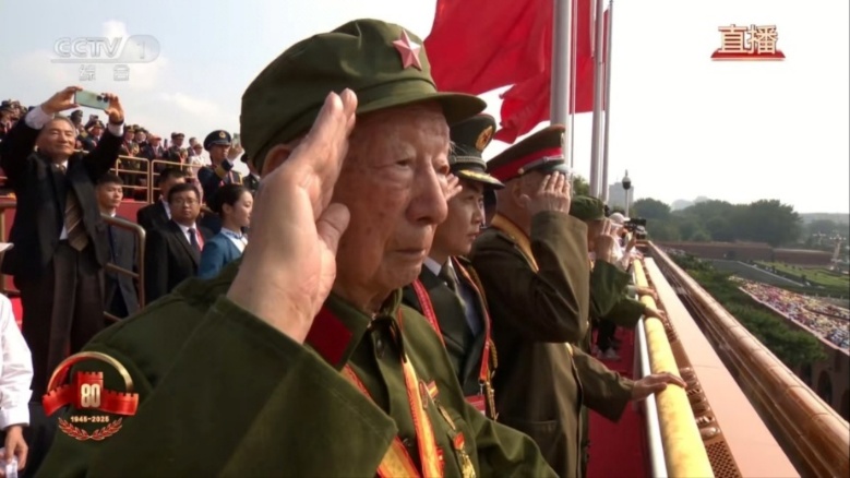 图1:阅兵式上老兵对着方阵庄严敬礼,令人动容